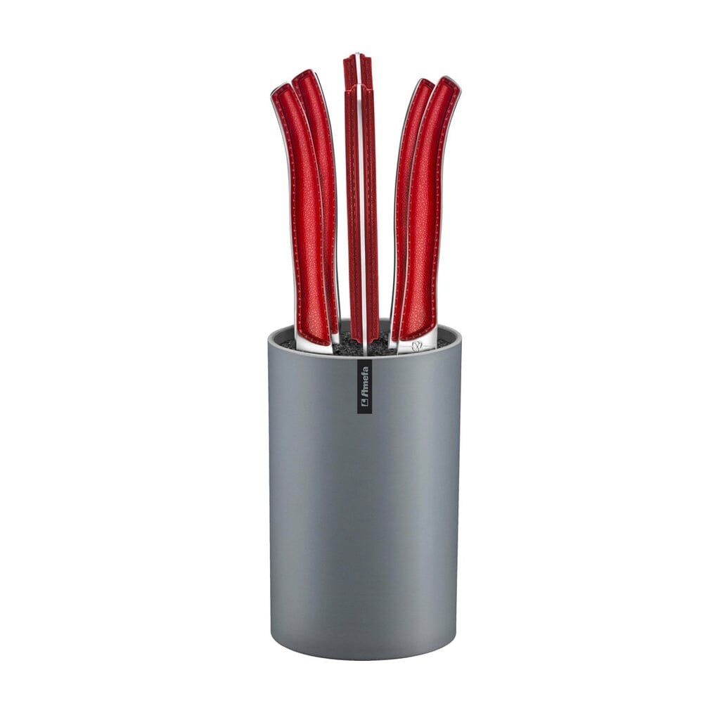 Les couteaux à steak Amefa Sky Lag 6 + bloc à couteaux en version rouge sont un bel ajout à votre table. Faisant partie de la célèbre collection Sky Lag d'Amefa, cet ensemble de couverts est connu pour sa finition élégante et ses couleurs modernes. Le design est basé sur le style Laguiole traditionnel et est fabriqué en acier inoxydable de la plus haute qualité. Commandez dès aujourd'hui le magnifique set de 6 couteaux à steak Amefa Sky Lag rouge en version cuir et profitez de sa haute qualité et de sa longue durée de vie !