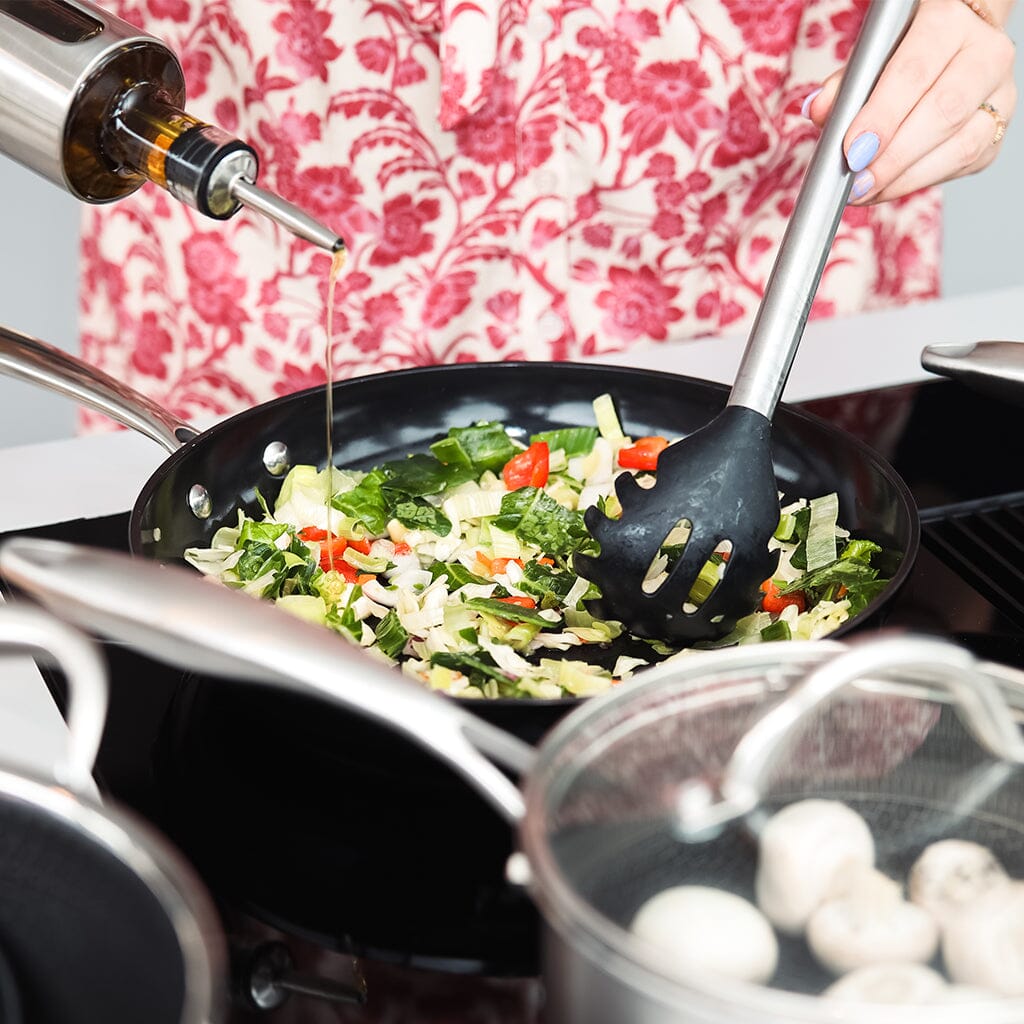 Laissez le chef qui sommeille en vous briller d'enthousiasme : grâce au fond extra épais, la chaleur dans la poêle est répartie uniformément, tandis que la poêle ne se déforme pas. Les parois parfaitement placées assurent une conduction thermique optimale. Cela vous permet d'atteindre la température de cuisson idéale en un rien de temps, laissant vos plats pleins des meilleures saveurs et de minéraux nutritionnels sains. Votre viande sera plus tendre et juteuse, sans que vous ayez à faire d'effort supplémentaire. Des résultats optimaux avec un minimum d'effort. De plus, vous économisez jusqu'à 30 % d'énergie, car la poêle chauffe plus rapidement. Tirez le meilleur parti de vos créations culinaires, avec un minimum d'effort et un maximum de goût, grâce à notre Poêle Signature 20 cm.