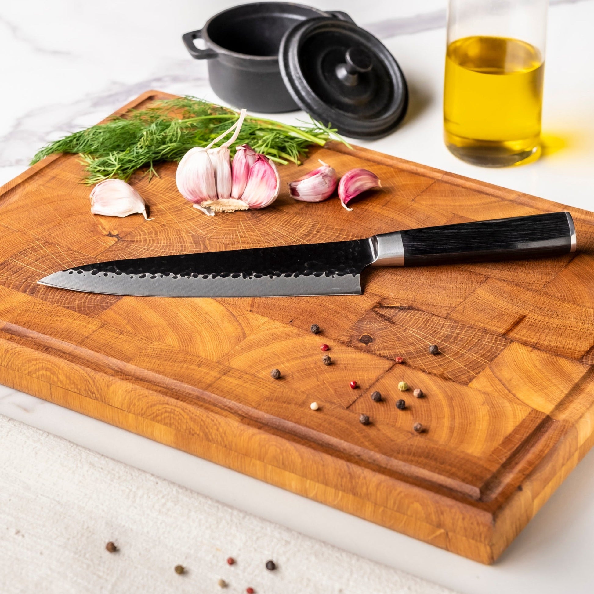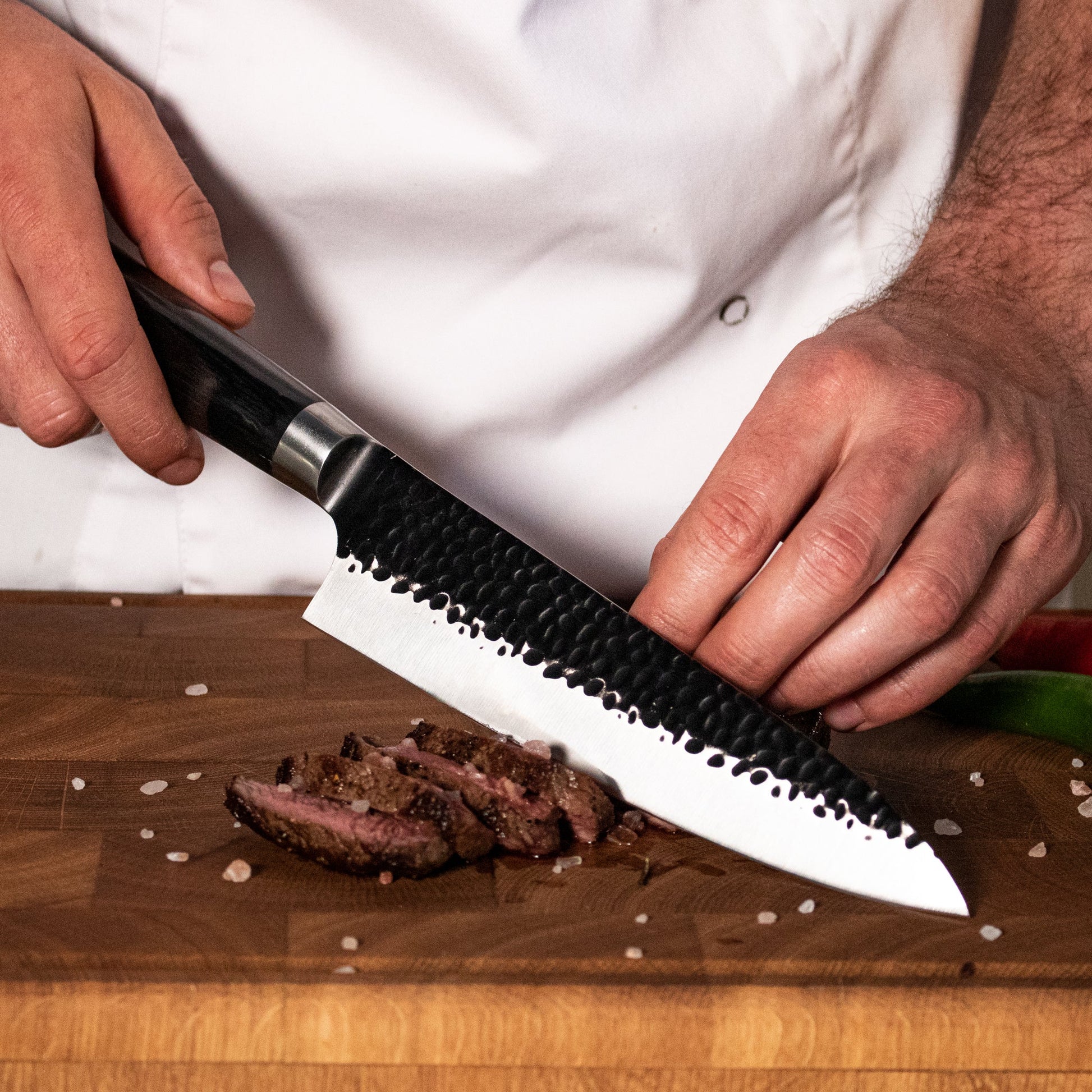 Hammered stainless steel Black Series from Shinrai Knives are unique for every kitchen.