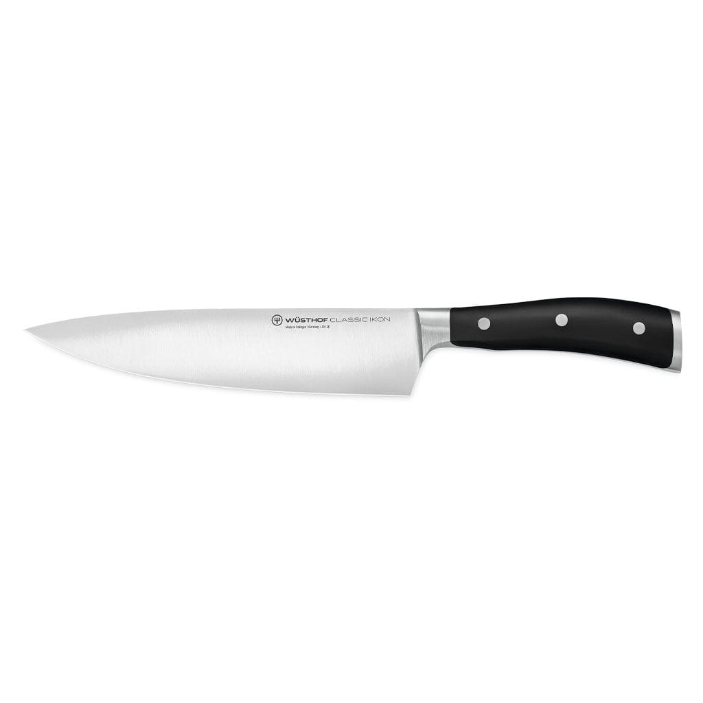 The knives are from the high-quality Classic Ikon series by WÜSTHOF , renowned for their ergonomics, balance and durability. Each knife is forged from a single piece of stainless steel and sharpened with the utmost precision. The double-curved black handles with stainless steel end pieces ensure optimum grip and an elegant finish.